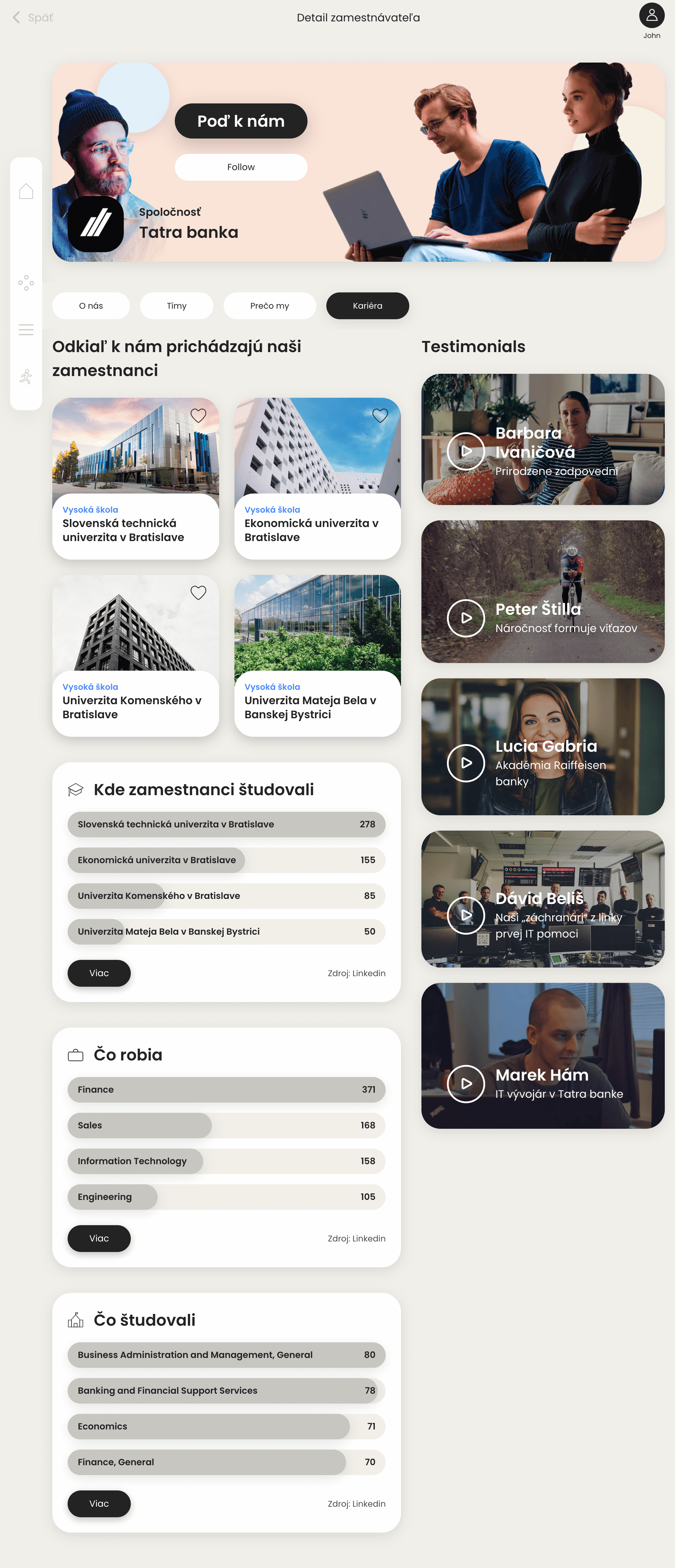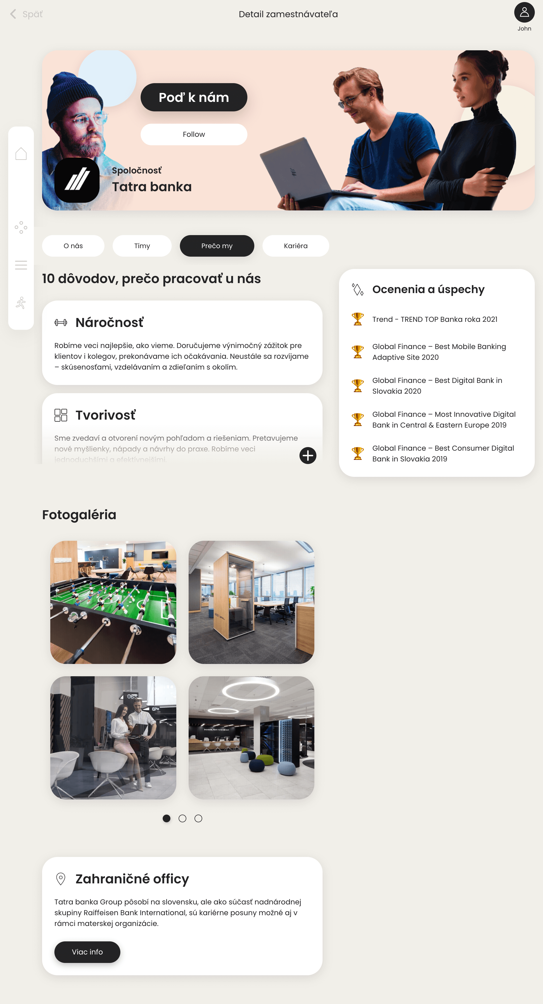 Argumenty, videá, fotky, testimoniály, ocenenia, vaše úseky/oddelenia a tímy, povolania a pozície, praxe a brigády, pracovné ponuky, zahraničné možnosti, mentoring...